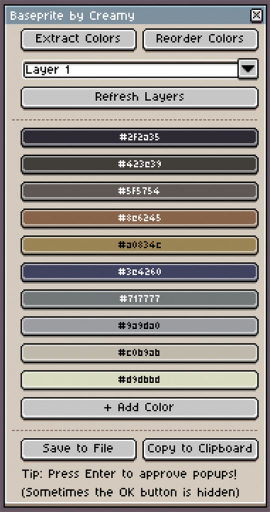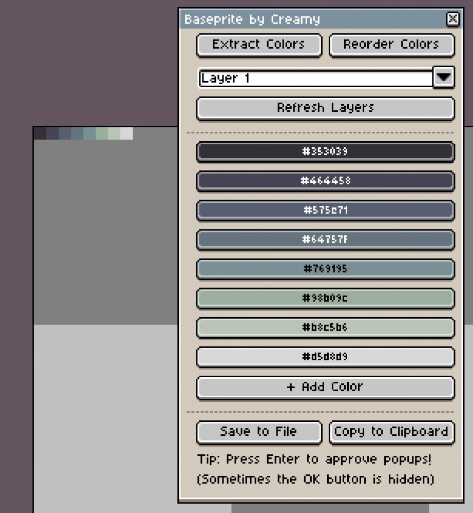 Do you love Baseprite? Try Palette Hex too – this new script allows you to quickly paste Basepaint palettes into Aseprite!